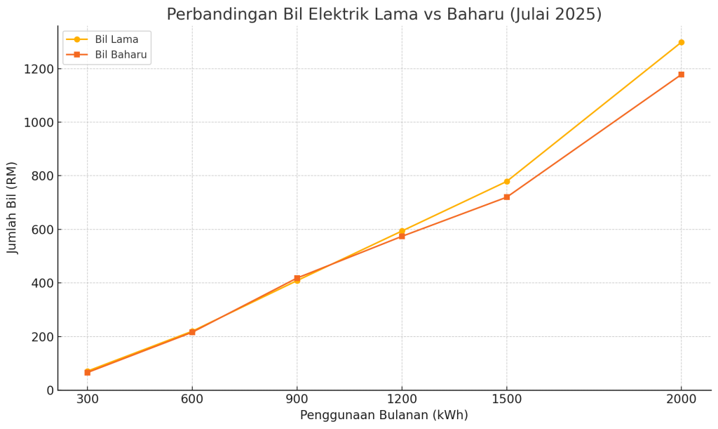 - Penggunaan rendah (≤600 kWh) boleh jimat RM 3–4 sebulan